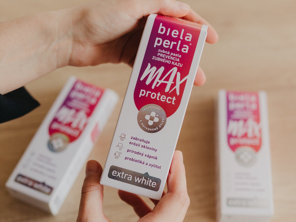 Skvelým pomocníkom môže byť bieliaca zubná pasta od slovenského výrobcu biela perla® MAX protect, ktorá vďaka obsahu fluoridov chráni pred vznikom zubného kazu a demineralizáciou zubnej skloviny. Zároveň obsahuje probiotiká Lactobacillus paracasei, ktoré udržujú prirodzený mikrobióm ústnej dutiny a chránia pred zápalom ďasien. Prítomnosť aloe vera, harmančeka, mäty a klinčekov zas pôsobí antibakteriálne, protizápalovo a regeneračne. Prirodzene bieli zuby a je vhodná pre každého, kto má problémy so zubným kazom, oslabenou zubnou sklovinou či nadmernou tvorbou zubného povlaku.