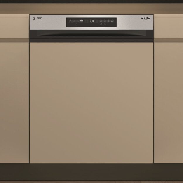 Vstavaná umývačka MaxiSpace WH7PC15B4M60 (Whirlpool), s nerezovým panelom, technológia 6. ZMYSEL, až o 10 % viac priestoru pre objemnejšie hrnce a misy, praktická zásuvka na príbory, funkcia NaturalDry, bezpečnostný systém AquaStop, šírka 60 cm.
