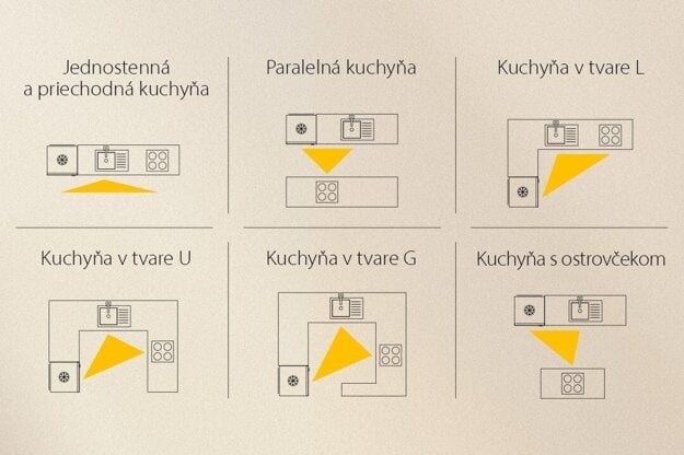 - Plynulosť: Medzi zónami by nemali byť prekážky, aby bol pohyb pri varení prirodzený a pohodlný.